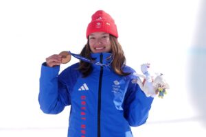 Zoe Atkin won women’s ski halfpipe bronze in Livigno on Sunday to claim Great Britain’s fifth medal of their record-breaking