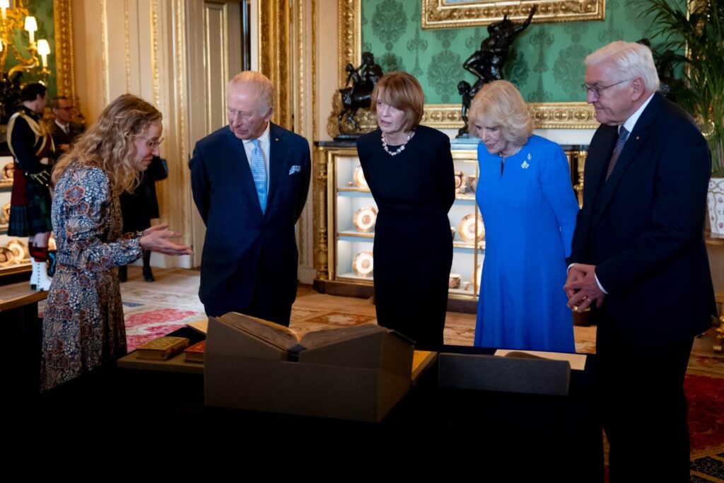 The King, the Queen and the Prince and Princess of Wales have given a warm welcome to the President of Germany at the start of his historic state visit..